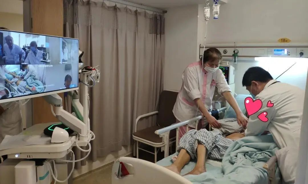 “我们去看看病人吧”,在王院士的提议下,查房机器人在同仁血液医生“带领”下来到患者床边,“王阿姨,你好!我是瑞金医院王医生,能听到我说话么?你有气喘么?脚肿么?”王院士“亲眼目睹”了患者的情况,详细追问了部分病史细节,“刘医生,你帮王阿姨腹部体检下看看脾脏有没有肿大?看看王阿姨的腿有没浮肿?有没出血点?”,同仁医院血液科主任刘立根,根据王院士的要求获取了准确的体检信息。