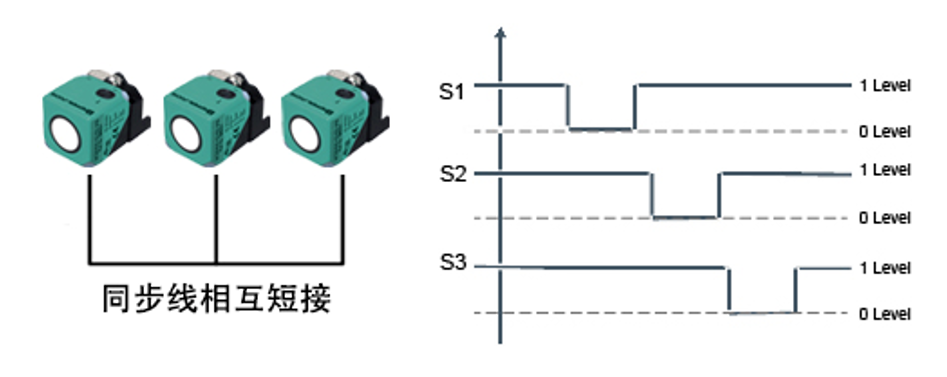如今,倍加福推出的超声波传感器,大多都带有同步功能,通过简单同步线连接和参数选择,即可实现。