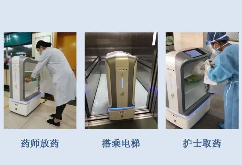 “大家好!我是物流机器人小易,很高兴跟大家一起乘坐电梯,我要去送药啦,请大家多多支持我的工作,谢谢!”
