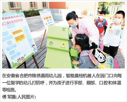 日前,国内各省区市的幼儿园正有序开园复课。为做好防疫工作,部分幼儿园采取“互联网 晨检”模式,引入智能晨检机器人,让孩子们在与机器人互动游戏过程中轻松有趣地完成晨检。检查完成后,家长的手机微信上就收到了晨检数据,畅通了信息传递渠道,实现了数据共享。