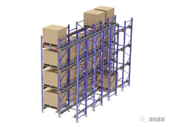 优点是:避免了贯通货架的危险性问题,同时提高了货位进深数量。仓储利用率达到75%以上。