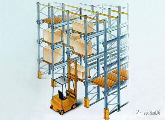缺点是:叉车需要开入货架内部操作,危险性较高,操作者在货架内部的视野不够开阔,光线不足。对于空间利用率有不足,对6米以上空间无法作业,同时稳定性存在缺陷。同时此货架局限于先进先出原则。