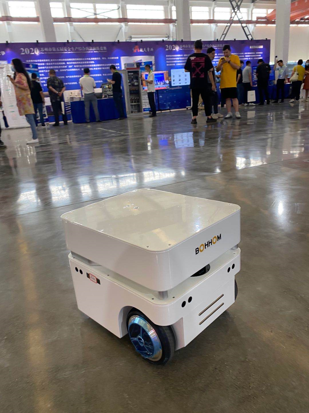 博众本次展出的产品是博时捷智能移动底盘和室内安防机器人。这两款产品可以在室内、室外领域提供安全保护。