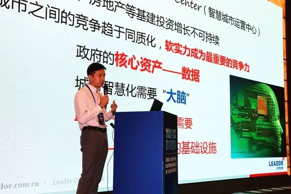 立得空间智慧城市系统方案部总经理吴萌作了题为《智慧城市运营中心的建设与运营》的演讲。