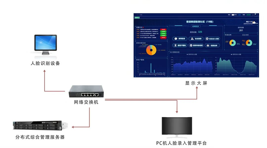 灵至“智慧社区”解决方案:前端通过智能门禁设备进行人脸采集,有效区分住户身份;中端通过“智慧社区”系统协同物业,以小区流动人口管理为核心,实时掌握小区内人员流动、小区居住人口身份信息等情况,实现了小区基础管理体系的创新升级。