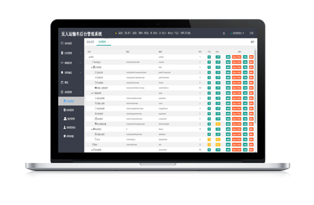 自动化分布式智能物流调度平台根据规划好的搬运任务,对协同工作的物流机器人进行任务调度、基础参数设置及路径规划,完成货物输送及过程控制信息的传递, 提升机器人整体物流效率。并能实时监控所有运行中的物流机器人的工作状态,包括任务管理、设备状态、电量情况等,实现机器人高效管控。