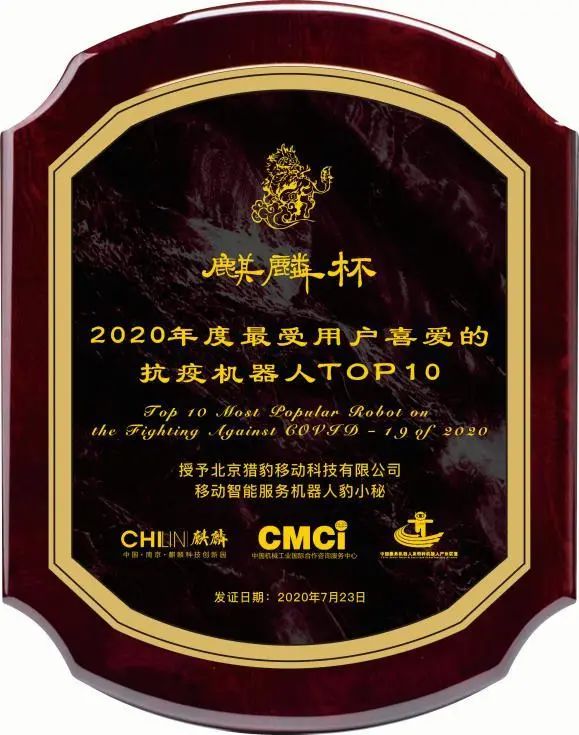 近日,第六届国际服务机器人产业高峰论坛暨第三届麒麟杯颁奖典礼在南京举行。此次论坛由中国机械工业国际合作咨询服务中心、南京麒麟科创园管委会、中国服务机器人及特种机器人产业联盟联合主办。抗疫期间,凭借对两大实体场景的突破,猎豹移动旗下猎户星空智能服务机器人“豹小秘”,强势入选2020年度最受用户喜爱的抗疫机器人TOP10。