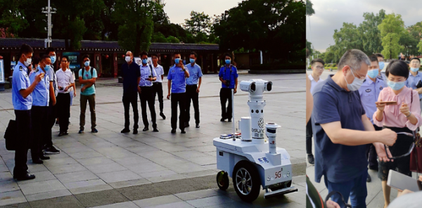 7月23日,在2020年东莞市公安局5G警务创新应用试点活动中,东莞联通展示了部署在旗峰公园的5G警务场景应用。借助大带宽、低时延的5G网络,5G+警务巡逻机器人可全天候自主巡逻,将高质量的语音、画面实时传至指挥中心,提升安全防护水平。同时,AR眼镜可实现移动执法、巡逻安检、远程指挥调度、立体防控等功能,让一线人员真正“解放双手”,实现了信息实时互通。