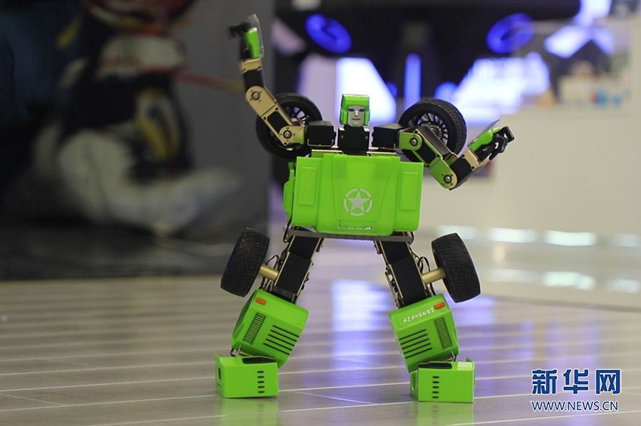 “汽车人,变形!”一声令下,小汽车变成了机器人,动感的舞姿让它成为全场焦点。新华网发(吴月浩 摄)