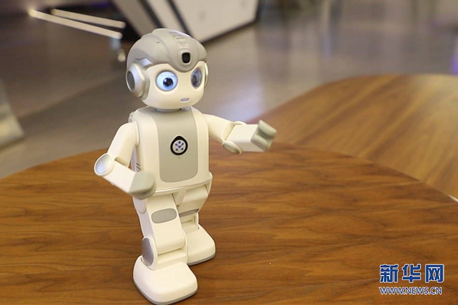 机器人“悟空”不仅会背古诗、跳舞,还可以与人对话、人脸识别“小伙伴”,打太极、做俯卧撑、打喷嚏等仿生动作都活灵活现。新华网发(吴月浩 摄)