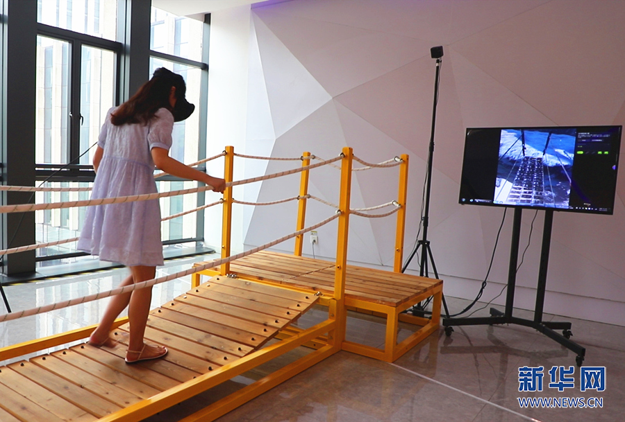市民正在体验VR游戏“漫步云端”。新华网发(吴月浩 摄)