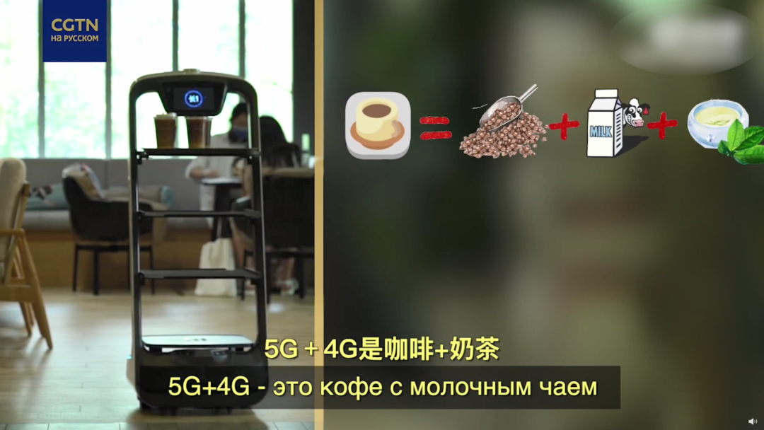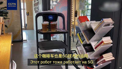 例如在充满活力的5G科技感的咪咕咖啡店里,作为5G技术应用之一的配送机器人欢乐送正在有条不紊地为各桌顾客运送5G +系列饮品,包括鸳鸯系列5G + 4G咖啡,果酸系列5G + AICDE咖啡等。