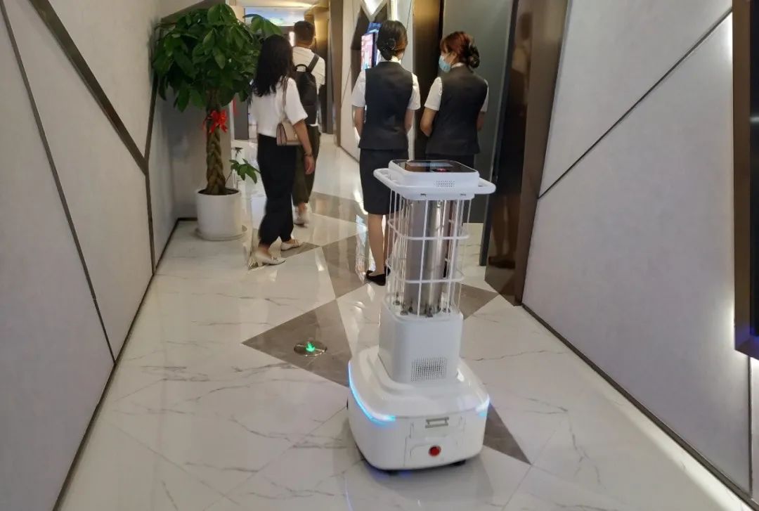 疫情防控期间,公共场所的消毒清洁便成为重点工作。然而投入大量人员进行消毒保洁,会花费大量人力成本和时间成本,因此电影院还特别引入了深兰专业 UV-C 紫外光学消毒机器人执行消毒工作。