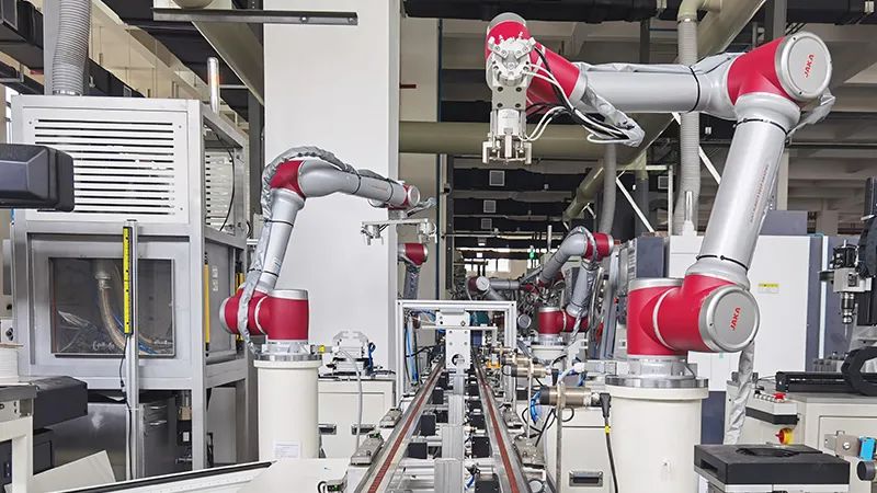 JAKA Zu 12协作机器人具有良好的兼容性,快速实现上下游自动化设备的对接,实现与其他设备及工作环境共融协作。同时JAKA Zu 12协作机器人结构紧凑,在密集的工作场景中可以灵活运行。减速器的关键零部件,每一道工序都是精密加工,与车床主轴后拉式卡盘取料、放料,产品间隙仅有0.1mm,这就要求了机器人的高精度作业和精准的调试。JAKA Zu 12协作机器人,重复定位精度为±0.03mm满足客户的现场需求。而且采用无线示教,模块化编程使得项目操作更简单。节卡小助协作机器人现场运行优秀表现和总控的交互高稳定性赢得了客户的肯定。节卡机器人减速器自动化智能柔性装配生产线,极大地提升制造企业的生产效率,同时在提升产品质量方面也有表现,实现了产线全自动化数字管理,解决国内厂商减速器的规模化生产问题,还能面向更为广阔的外部市场,促进我国机器人产业的整体发展,并且使企业从中获得巨大的效益。