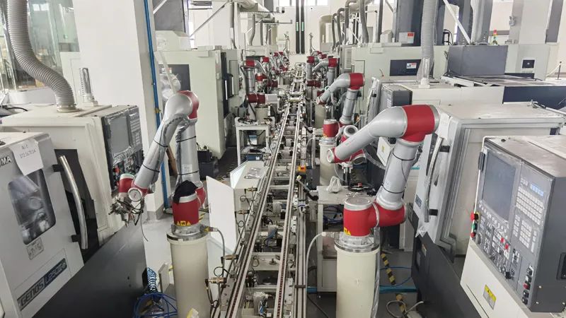 项目中共部署了几十台JAKA Zu 12协作机器人,通过总控分别给JAKA Zu 12协作机器人下发任务,协作机器人配合线体和应用设备做自动上下料工作,根据产品的工艺需求,JAKA Zu 12协作机器人配合车床车削,加工中心精洗、清洗工位清洁、三坐标检测、螺纹检测、产品浸油等,实现整线自动化生产。本次JAKA Zu 12协作机器人扮演的角色是串联生产工位与流水线的配合,与单机工作不同,产线上JAKA Zu 12协作机器人每套动作都需要与总控进行交互,并且全流程产品NG实时监控。SCADA系统监控获取每一台协作机器人的实时信息,每个产品在每个环节进行跟踪,对数据分析和管理。