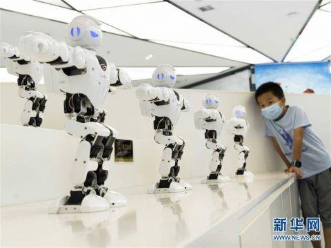 8月15日,在重庆两江机器人展示中心,一名男孩在观看机器人表演。 暑假期间,不少家长带着孩子来到位于重庆两江新区的两江机器人展示中心参观。融合AI、VR技术,搭载人脸识别、人体感应等识别系统的机器人让孩子们大开眼界。孩子们通过和机器人交流互动,学习科学知识、感知科技魅力、丰富假期生活。 新华社发(秦廷富 摄)