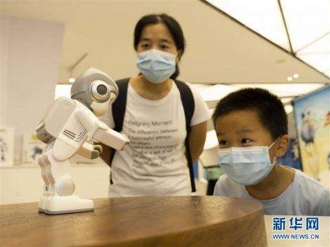 8月15日,家长带着孩子在重庆两江机器人展示中心参观。 暑假期间,不少家长带着孩子来到位于重庆两江新区的两江机器人展示中心参观。融合AI、VR技术,搭载人脸识别、人体感应等识别系统的机器人让孩子们大开眼界。孩子们通过和机器人交流互动,学习科学知识、感知科技魅力、丰富假期生活。 新华社发(秦廷富 摄)