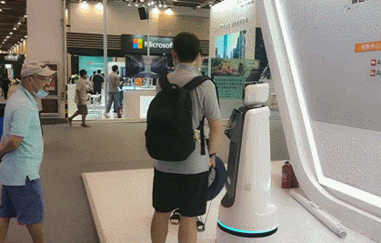 在展会现场“自主穿梭”的运动底盘敏宝,吸引了多家机器人服务商前来咨询定制化开发需求,配有敏宝的机器人产品可应用于金融、政务、零售、商场、酒店等不同商用场景。