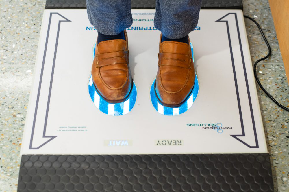 新型的消毒工具中包括一个供客人使用的鞋用消毒垫,一个可用于清洁轮椅和行李手推车的吊舱以及一个用于存放个人物品(例如电话,钥匙和平板电脑)的小房间。