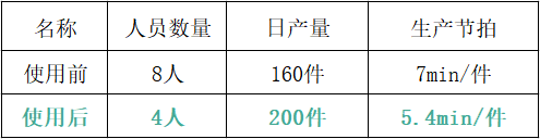 客户在经过使用川崎机器人与勤工机器人共同打造的自动化焊接生产线,月度产品一次合格率提高到99.9%,大大提高产品质量水平和加工精度。同时客户通过使用焊接机器人工作站,月度成本也得到大大降低,综合运营成本 0.3 元/件,比原人工加工运营成本降低 216%,成本管控优势明显。