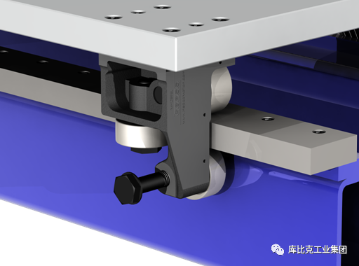 3个滚轮为一组,分别在平导轨的经过表面淬硬的3个面滚动,可承受恶劣的受力状况。