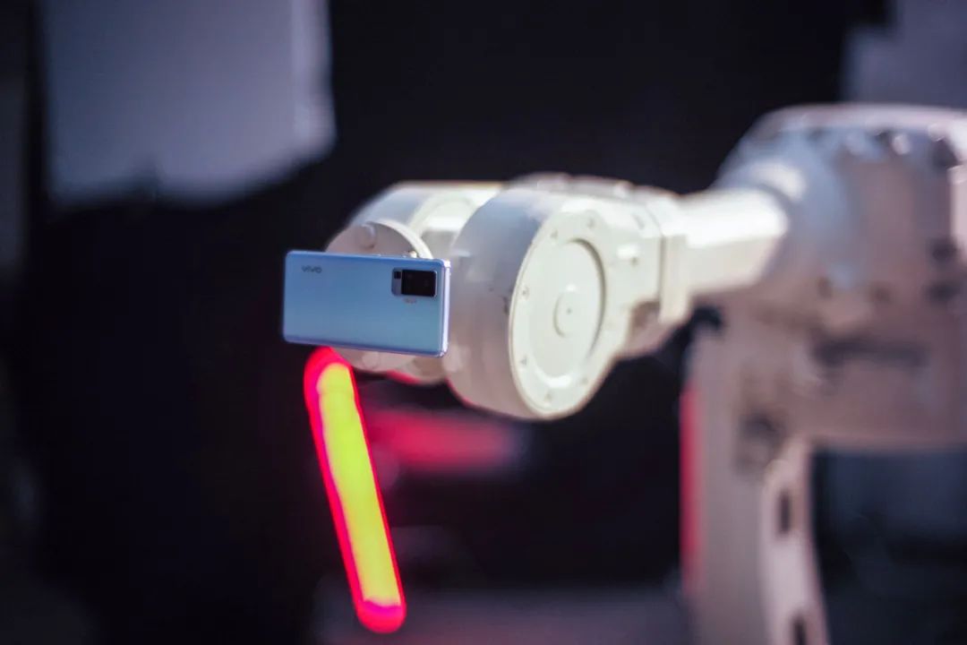 ABB机器人持着vivo X50 Pro手机不断运动,并在运动中捕捉王嘉尔精彩的舞蹈瞬间。这场ABB机器人和vivo手机的合作,充分展示了微云台带来的极其稳定的运动拍摄体验。