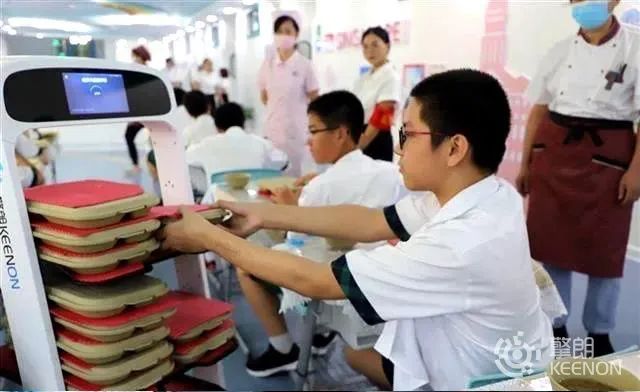 “同学们可以就餐啦,粒粒皆辛苦,请同学们不要浪费……”午餐时间,一段清脆悦耳的声音在武汉经开外校食堂里响起,这个声音来自长相呆萌的智能送餐机器人,是全球餐饮配送机器人标杆企业擎朗智能的人气产品。学生们先按自己的喜好,从三种套餐里选一种。随后,送餐机器人的三层格子里分别送三种套餐到学生手上。