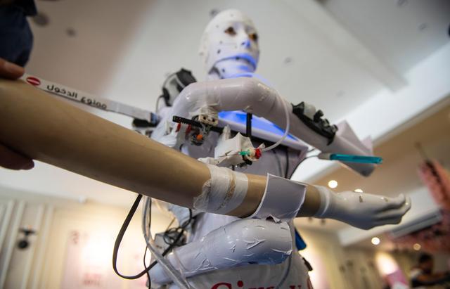 新华社照片,外代,2020年8月25日 (外代二线)(3)埃及工程师研发抗疫机器人 这是8月23日在埃及坦塔拍摄的抗疫机器人。 埃及工程师马哈茂德·科米研发了该款多功能抗疫机器人。 新华社/欧新