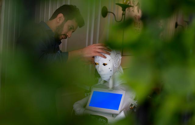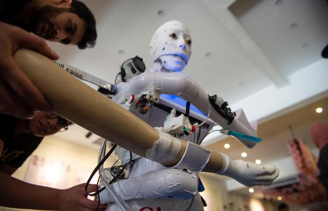 新华社照片,外代,2020年8月25日 (外代二线)(6)埃及工程师研发抗疫机器人 8月23日,埃及工程师马哈茂德·科米在埃及坦塔调试机器人。 埃及工程师马哈茂德·科米研发了该款多功能抗疫机器人。 新华社/欧新