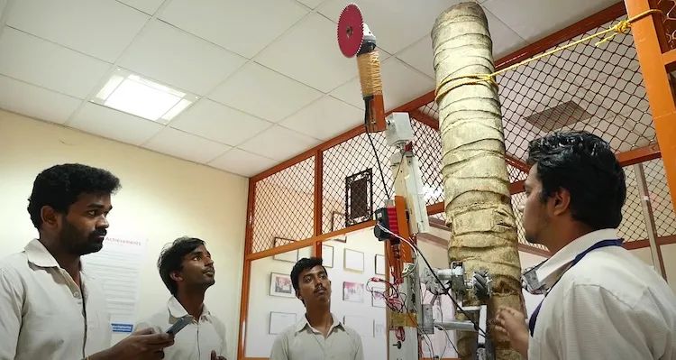 在印度和其他发展中国家的椰子农场中,通常,人们攀上椰子树来收获成熟的椰子,工作既危险效率又低,再加上劳动力严重缺乏,现在愿意干这项活的人越来越少了。