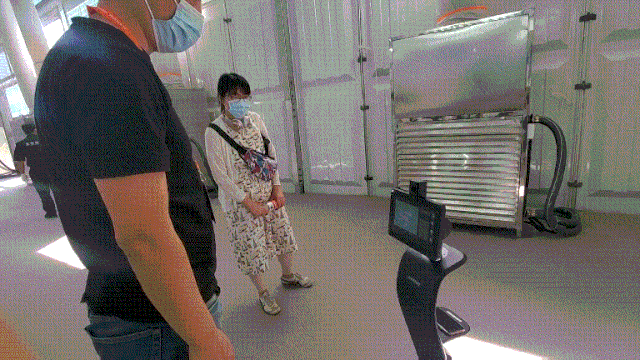 拥有着机械臂的机器人仿佛在对参观者挥手。