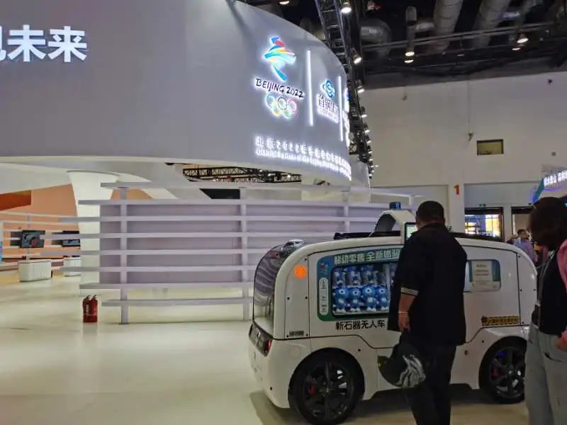 在2022冬奥会展台,新石器无人车正在模拟2022冬奥会期间的零售场景,一个个可爱的冬奥吉祥物将不再陈列在展柜当中,通过监控数据与数据分析,一辆辆载着吉祥物的新石器无人车将通过自动驾驶模式,找到人流密集的地点进行精准营销。