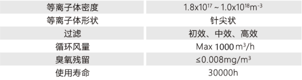 在高压循环风机强对流的作用下,由初、中效过滤网将毛发、粉尘等大中颗粒尘埃滤除,过滤后的空气到达等离子电厂杀菌区,被强电场离子化而产生等离子体。通过等离子体富含的高能电子、自由基等活性粒子可以有效的杀灭空气中的微生物,降解空气中的有害物质,还能吸附微尘。最后通过高效过滤网将空气中的有害气体及异味降解,经多次循环处理,即可将密闭空间内的空气变成洁净清新的空气