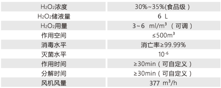 1.独特恒压蒸发技术,利用文丘里效应产生过氧化氢分子,使过氧化氢分子形成3μm以下微粒