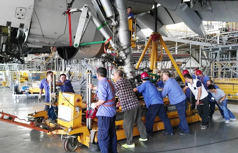 1、全向移载平台加举升丝杆,可精准对位装配起落架;