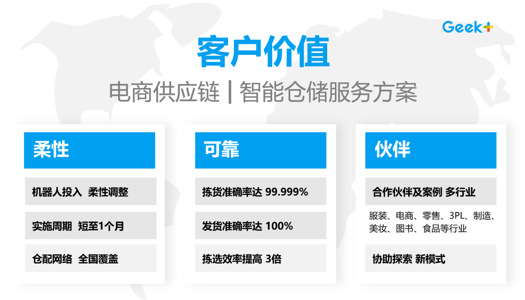 极智嘉RaaS模式中的智能仓储服务,通过在仓储运营中心部署AMR机器人,实现智能拣选及库区无人化管理;通过多点的仓网布局,联合快递合作伙伴,为电商企业或平台提供覆盖全国的仓配一体化服务,扩大物流覆盖面积、灵活地响应市场需求并抓住下沉市场的渗透机会,提高多级市场的服务水平。