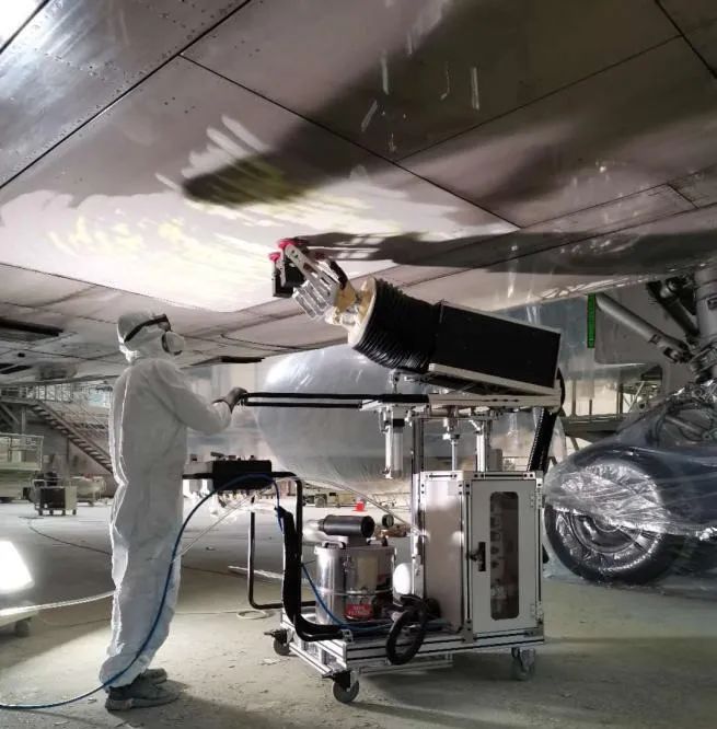 在民用航空领域,每过几年就要对飞机磨去蒙皮油漆和再喷新漆。国内飞机维修行业还是全手工打磨蒙皮阶段,为防止粉尘爆炸,生产现场不允许有任何的电动装置;工人们操作时只能仰着头、拿着简易工具一点一点地磨,油漆粉尘铺天盖地迎面而来,工作强度大,非常容易疲劳,工人不可避免地在工作过程中,吸入有毒粉尘,造成职业病。埃华路机器人急客户所急,投入大量技术资源,细致论证,反复试验,在多个技术难点攻关上取得突破,短时间内自主研发成功国内第一台全气动飞机蒙皮油漆打磨专机,已经交付某飞机维修厂使用。该设备全系列产品的研发也在同步进行,成功后,将为飞机、风电、机车、造船等高端制造行业提供了全新概念、高性价比的表面打磨专用设备。