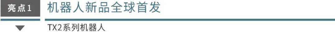 史陶比尔将展示全新机器人产品系列,重磅新品 TX2-140和TX2-160L六轴机器人将在华全球首发。作为TX2家族的新成员,全新 TX2-140/160 系列采用模块化智能设计,紧凑的底座搭配更广的工作范围,更大的有效负载。配备 CS9 系列智能控制器,满足SIL3-PLe最高级别安全等级,同时兼具卓越生产效率,为客户提供了更丰富的中负载机器人新选择。