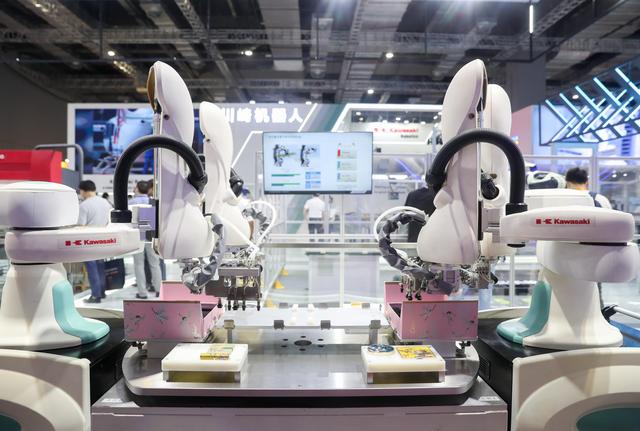 ↑9月16日在展会现场拍摄的“双臂机器人”。在国家会展中心(上海)举行的第二十二届中国国际工业博览会上,机器人展区内的各类机器人在现场展示各自的“绝活”,吸引了众多参观者。新华社记者 丁...