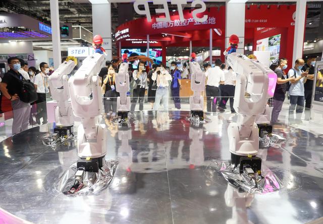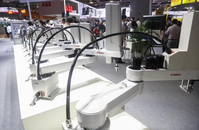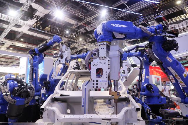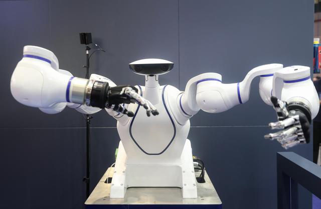 9月16日在展会现场拍摄的“双臂机器人”。在国家会展中心(上海)举行的第二十二届中国国际工业博览会上,机器人展区内的各类机器人在现场展示各自的“绝活”,吸引了众多参观者。