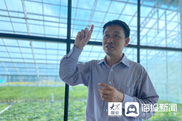寿光市农业农村局农艺师李光聚介绍整个智慧科技园区情况。(摄影:满倩倩)