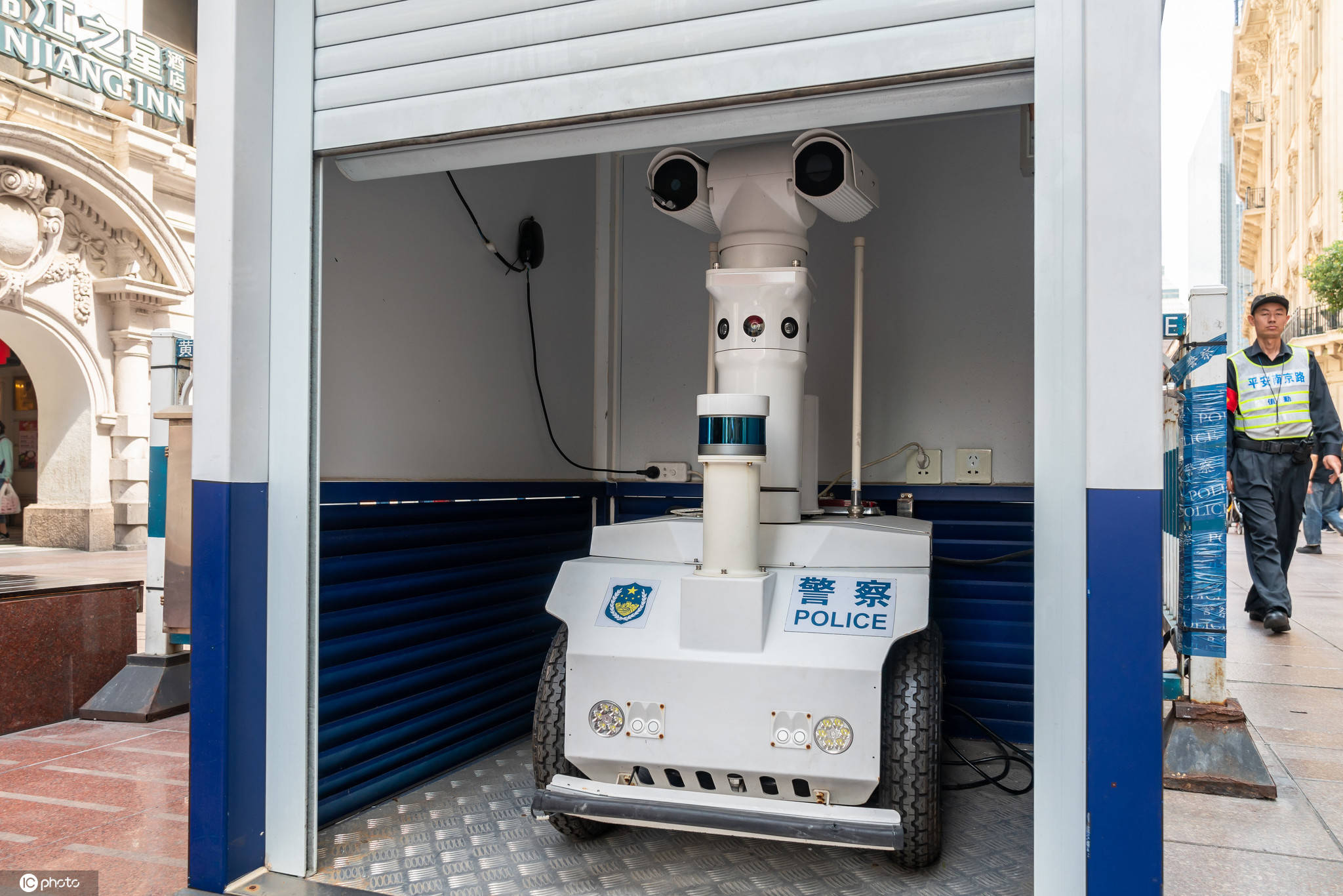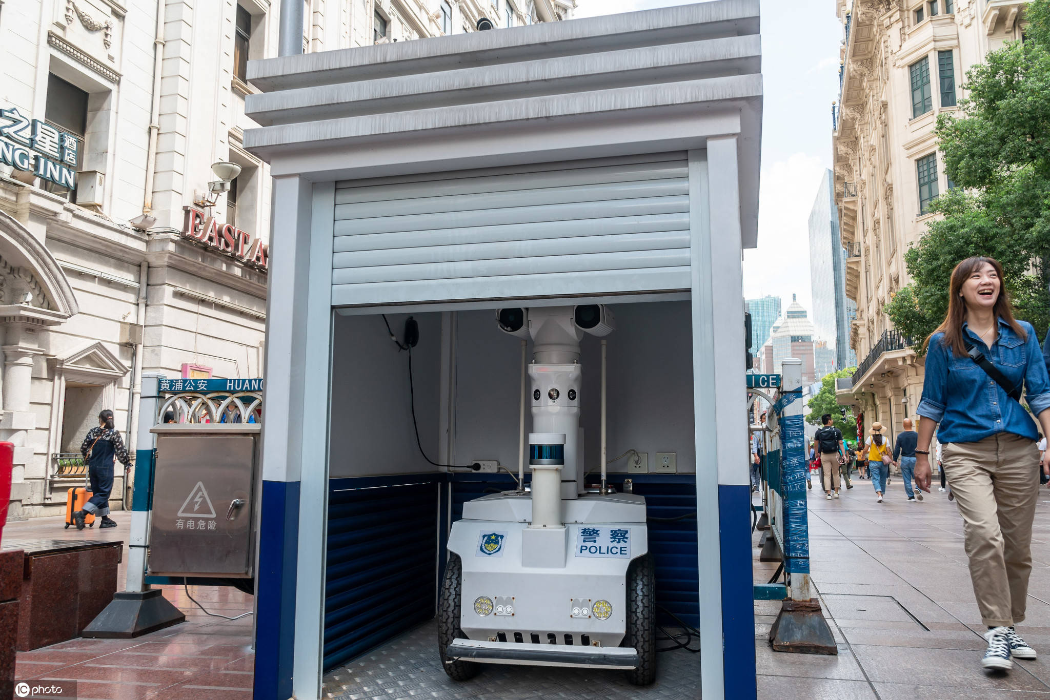 近日,“瓦力”有了自己的居所,有关部门在南京路步行街上为机器人建造了一间小屋,“瓦力”在没有巡逻任务时,就萌萌哒得呆在屋子里。