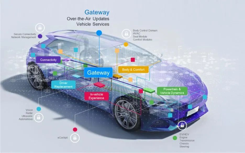 车辆制造商(OEM)积极致力于研发新功能,以期从竞争中脱颖而出。自动驾驶需要安全连接和功能域ECU之间的高带宽通信,因此要想实现自动驾驶,网关必不可少。 网关作为车载网络的核心,也非常适合用来支持全车范围的应用,如无线(OTA)更新和车辆数据分析,以及与OEM服务器(云)的安全通信。