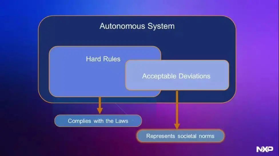 当争论被表述为安全的自动驾驶系统要始终遵守交通规则时,我们在现实世界中却会观察到与严格的规则相应、有时候甚至是相反的某些场景,存在社会规范可以使大多数复杂的系统进行更高效的运作。这些社会规范允许在某些情况下违反交通规则,比如在即将驶入车道时,绕过抛锚车辆或被拦下的车辆。有时,违反交通规则并不是故意为之,而是避免交通事故的必要措施。自动驾驶系统需要配有决策矩阵,从而选择可接受的违反交通规则的方式,以实现更安全、高效的驾驶。