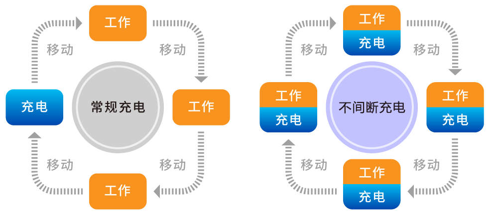 AGV 日常工作过程比较/常规充电与不间断充电方式的比较