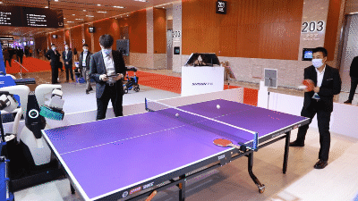 庞伯特智能乒乓球机器人拥有新松机器人与中国乒乓球学院的纯正血统,将机器人与人工智能完美结合,为全球首款类人型发球机器人,做到了完全模拟人类教练的发球行为的同时对速度频率和旋转控制的更加精准。庞伯特智能乒乓球机器人的双目视觉系统利用先进的人工智能技术,实时捕捉高速运动下的乒乓球位置,在毫秒内判断球速以及球的旋转方向,并能对每一次回球轨迹进行实时运算分析,根据每次训练搜集的数据动态优化训练策略。