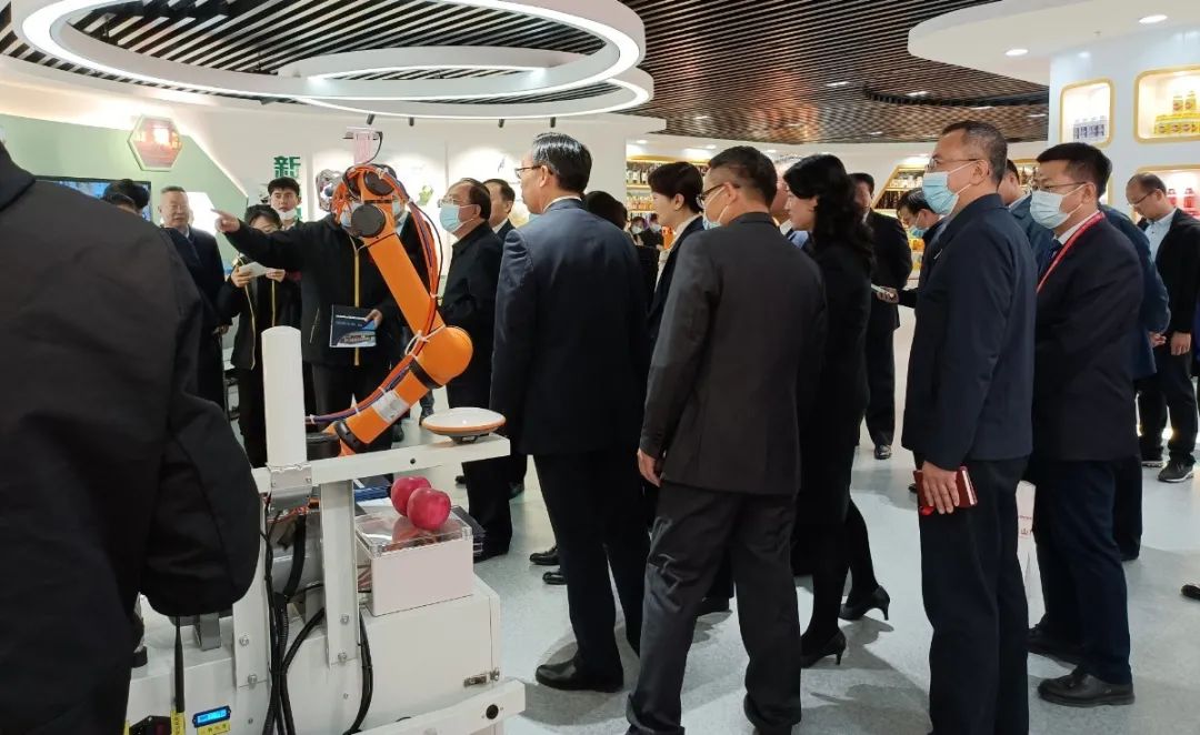 27日下午,部分参会领导和国内外主要苹果产区及优质果品地区展团嘉宾一行来到蓬莱区昊林果品合作社示范基地,现场观摩悟牛智能Tank系列无人驾驶果园管理机和采摘机器人全程无人化作业,悟牛智能智慧农业解决方案赢得在场领导和嘉宾的大力青睐。