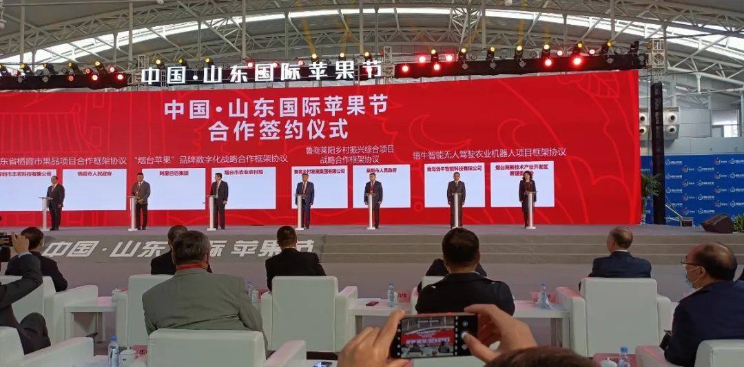 悟牛智能应邀参加本次开幕式,与烟台高新区现场签约,悟牛智能无人驾驶农业机器人项目顺利落地烟台高新区,本项目结合烟台当地农业特色,基于悟牛智能“智慧农业管控云平台+无人驾驶车+作业机器人”的三位一体智慧农业解决方案实施,项目落地后,预计示范果园生产减少70%的人工成本投入,减少30%的化学品投入,为水果生产企业降低50%的生产成本投入,带动至少10个标准化果园的智能化改造,促进相关科技金融投资超千万元,助推烟台苹果产业高质量发展。
