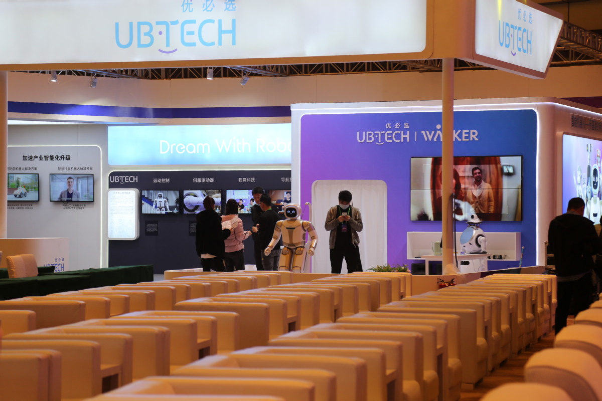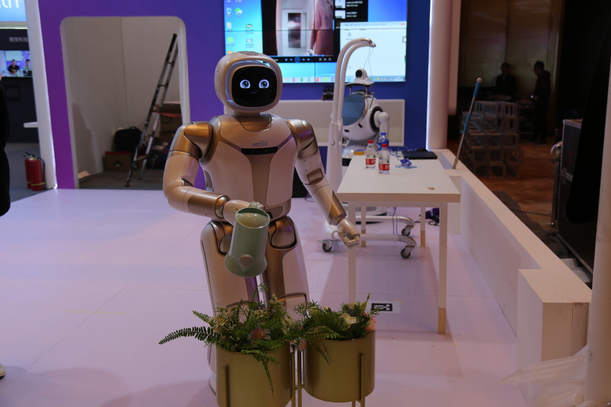 “来,足球踢起来!”会议中心里,大型仿人机器人Walker正在和一只足球互动,轻盈的姿势引来了布展工人的打趣。Walker个头不高,却可以快速稳定地在地面行走,也可以运用灵活的双臂端起桌子上的一杯水。甚至,他在浇花的过程中,能准确识别喷壶的位置、大小和形状,去规划行动路径,通过7个自由度的手臂,调整抓握姿势以完成操作。