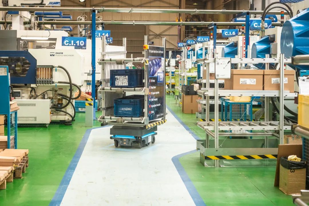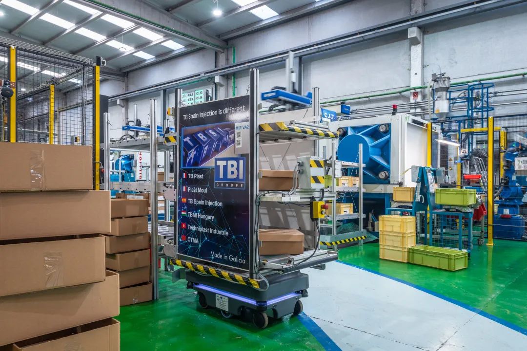 法国跨国集团TBI的西班牙工厂通过单料、双料和三料注塑法生产精密技术零件,最近工厂部署了两台MiR200™用于内部材料运输,这一举措不仅提高了生产操作人员的生产力,而且节省了空间,增加了注塑机的数量。这两台机器人每月里程约100公里,使得公司可以重新指派两名仓库技术人员从事更高价值的配送区工作。